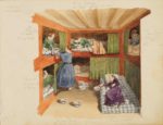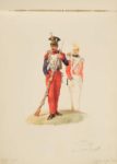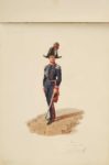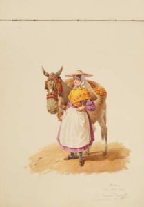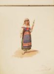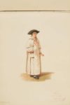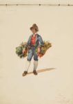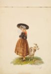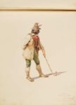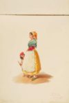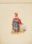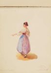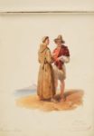 LEMOINE-BENOIT Victor (Architecte) Voyage en Italie, 1845 Petit in-folio au format in-4° à l'italienne, reliure demi basane maroquinée verte sous son emboitage. Recueil manuscrit de 38 aquarelles et 12 dessins, signées annotés et situés, représentant essentiellement des costumes ou des architectures. On remarquera une scène d'auberge dans laquelle les compagnes de voyage de l'architecte sont représentées et nommées: Mme de Gaborie, Mlle Thaïs, Mlle Duchatelet, mme Jospeh Farcot, Mme Bourse, Mlle Martial, mme de Vroil...)