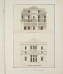 Dimensions de l'ouvrage : 655 x 550 mm. 44 planches simples et 7 doubles, parfois contrecollées ou réemmargées à la dimension de la reliure. Magnifique recueil de 51 dessins à la plume, encre de chine et lavis avec rehauts d'aquarelle. Il recouvre des projets pour - une maison de plaisance à intégrer au Parc Monceau, avec plusieurs projets d'aménagement du Parc - le palais depuis laquelle l'Empereur aurait dû voir l'invasion de l'Angleterre depuis Terneuse, en Hollande - les fontaines de la Place de la Concorde et du Carrousel - l'Hôtel du Ministre des relations extérieures du Royaume d'Italie (à l'emplacement de l'actuelle ambassade d'Allemagne à Paris) - ainsi que les projets de cimetières qui devaient entourer Paris.