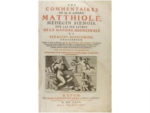 Grabados en el texto, vinetas y capitales. Portada a dos tintas con grabado. Enc. de época en plena piel, vervios y lomo cuajado. La primera edición de los comentarios del botanico Pietro-Andrea Mattioli ( Sienne 1501 - Trente 1577 ) aparecieron en italiano en 1544 ; durante el s. XVI° y XVII° se hicieron numerosas reediciones de este trebajo sobre Dioscorides , médico griego del S. I que, durante muchos anos, fué considerado como el mejor tratado en materia médica. Contiene abundantes informaciones sobre plantas medicinales utilizadas históricamente pero olvidadas.