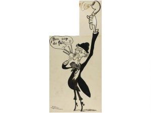 1914. PICAROL (JOSEP COSTA FERRE): iBON COP DE FALS.... " Tinta sobre papel, 36x17 cm. Firmado, (firmado en lapiz, repasado en bolígrafo). Dibujo publicado a L'esquella de la Torratxa, el 24 de abril de 1914.