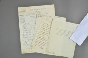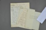 AGRONOMES ET BOTANISTES. 5 lettres. Georges Louis Marie DUMONT DE COURSET (1818, sur le dictionnaire d'agriculture de Bosc), Henri Alexandre TESSIER (Bazoches, 1824), Augustin François de SILVESTRE (1813, brouillon de lettre sur l'almanach du cultivateur et les activités d'une société savante), Louis HÉRICART DE THURY (2, dont une longue à la Société Royale et Centrale d'Agriculture, sur le forage de l'abattoir de Grenelle qui a permis le jaillissement d'une importante source d'eau souterraine, 1841).