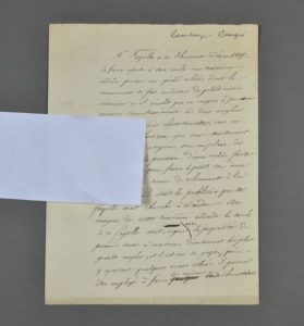 Charles-François BEAUTEMPS-BEAUPRÉ (1766-1854), hydrographe et cartographe, il participa à l'expédition d'Entrecasteaux à la recherche de La Pérouse ; il est considéré comme le père de l'hydrographie moderne. Manuscrit avec corrections et additions autographes. 3 pp. ¼ in-4. Manuscrit relatif aux moyens de mesurer les grands angles et à diverses inventions. " M. Fayolle a eu l'heureuse idée, en 1817, de faire ajouter à son cercle une troisième alidade portant un grand miroir dont le mouvement se fait au-dessus du grand miroir ordinaire et il réussit par ce moyen à pouvoir mesurer simultanément les deux angles compris entre trois objets terrestres []. M. Daussy a trouvé quelques années après un moyen très simple pour mesurer les grands angles. Ce moyen consiste à placer un petit miroir auxiliaire sur l'alidade qui porte la lunette et le petit miroir du cercle à réflexion et à le placer de manière à ce qu'il fasse un angle constant avec le petit miroir ordinaire [] ". Il précise que cet instrument peut aussi permettre de mesurer les distances de la lune au soleil et aux étoiles.