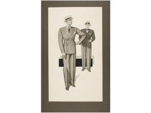 1920 ca. PUIGVERT: ORIGINAL DE MODA MASCULINA. Tinta y aguada sobre papel montado en cartonè. 35x20 cm. Los originales fueron reproducidos en la revista LA CONFIANZA, REVISTA DE MODAS. Barcelona: marzo de 1936. num. 126. Revista de la asociación...