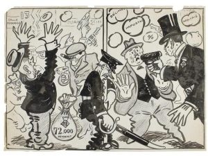 1923. [PICAROL (JOSEP COSTA FERRER)]. UNS ATRAQUEN L'AJUNTAMENT, L'AJUNTAMENT ATRACA ELS VEINS. Tinta sobre papel, 32x45 cm. Publicado en La Campana de Gracia, el 23 de junio 1923.