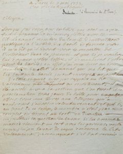 Louis DAUBENTON (1716-1800), naturaliste, collaborateur de Buffon, membre de l'Académie des sciences. Lettre autographe signée à Bernardin de Saint-Pierre. 1 p. ½ in-4. Paris, 9 mai 1793. Adresse au dos avec cachet de cire brisé. Quand il a reçu sa lettre la veille, il était avec Lakanal, du Comité d'instruction publique ; " à l'article des barils de farines vides, il m'a dit qu'il devait voir avec le ministre de l'Intérieur dans la journée et que si je voulois lui donner votre lettre, il demanderoit l'ordre pour les barils ; en effet, j'ai reçu hier au soir une lettre du citoyen Lakanal qui me dit que les soixante barils seront envoyés aujourd'hui ". Il se dit inquiet " par rapport au cit. Valencienne au sujet du recrutement ; il a été arrêté hier à la section que l'on feroit une proclamation trois jours de suite pour offrir trois cens livres aux citoyens qui voudroient s'enroler volontairement, et que si, au bout de ce temps, le nombre n'étoit pas complet, on tireroit au sort. On discutera aujourd'hui la question de savoir si les hommes mariés tireront au sort avec les garçons. [] J'ai fait voir au Cit. Lakanal la nouvelle galerie [du Muséum] et je lui ai exposé le besoin pressant de la parqueter ; il y a pris beaucoup d'intérêt ". Provenance : Charavay (mars 1982, n°39470).