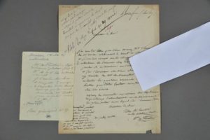 André Étienne d'Audebert, baron FÉRUSSAC (1786-1836), naturaliste, zoologiste et malacologue ; il fonda le Bulletin général et universel des annonces et des nouvelles scientifiques. - Lettre autographe. 1 p. in-16. Cachet de collection " SSP ". Sur l'envoi de l'Écho du monde savant et le prospectus de son nouvel ouvrage. - Lettre autographe signée à " monsieur le Duc ". 1 p. in-4. Déchirures. Sur les secours accordés à M. de Bonnafond.