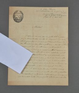 Oscar LECLERC-THOUIN (1798-1848), neveu d'André Thouin, il fut botaniste lui-même, membre de la chaire de culture du Muséum d'Histoire naturelle. L.A.S. adressée au naturaliste Alcide d'Orbigny (1802-1857). Paris, 3 mars 1823. 2 pp. in-4. Bel en-tête du Muséum (ruche). Cachet de cire rouge et adresse au verso. Oscar Leclerc-Thoüin a fait porter une petite boîte contenant une collection de graines chez Brongniart, à l'attention de d'Orbigny. Il a largement augmenté sa collection de coquilles fluviatiles en provenance de Maine-et-Loire et s'est assuré d'avoir tous ces nouveaux spécimens en double, pour pouvoir les offrir à d'Orbigny, si cela lui est agréable. Leclerc-Thouin attend également une collection de fossiles marins " dont je ne connais pas encore le mérite scientifique mais dont je sais que les échantillons seront bien conservés. Je vous offre cette collection dans laquelle vous trouverez sans doute des objets dignes de votre riche cabinet [] ".