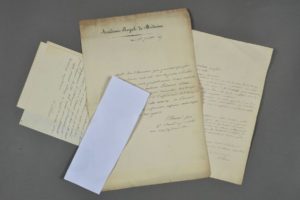 Étienne PARISET (1770-1847), médecin, secrétaire perpétuel de l'Académie de médecine. 11 lettres autographes signées à différents correspondants (dont 5 à Grün, rédacteur en chef du Moniteur), 13 pp. de différents formats. Deux en-têtes de l'Académie royale de médecine. 1927-1947 Lettres sur différents sujets, attestation pour un détenu de la prison de Bicêtre, remise de textes à son imprimeur, écriture d'éloges, etc. Plusieurs lettres, teintées de mélancolie, sont écrites durant les dernières semaines qui précèdent son décès.