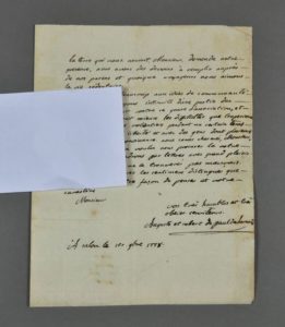 Robert de PAUL DE LAMANON (Salon-de-Provence 1752-1787), géologue et paléontologue ; il fit partie de l'expédition Lapérouse, et fut massacré à l'île Maouna. Lettre autographe signée à M. Dupay de Fuveau. 1 p. in-4. Salon, 1er novembre 1778. Adresse au dos Très rare lettre (écrite par Robert, qui la signe également au nom de son frère Auguste (1748-1820) dont il était très proche) ; ensemble ils voyagèrent à travers toute l'Europe et les provinces françaises, rapportant minéraux et plantes, et rencontrant les savants de l'époque (Laplace, Jussieu, d'Alembert, etc.) ; de cette moisson, ils constituèrent un Muséum d'histoire naturelle à Salon-de-Provence. " La terre qui nous nourrit, Monsieur, demande notre présence, nous avons des devoirs à remplir auprès de nos parents, et quoique voyageurs, nous aimons la vie sédentaire. Nous tenons beaucoup aux idées de communauté bien que nous soyons instruits d'une partie des objections qu'on fait contre ce genre d'associations, et comme rien n'éclaircit mieux les difficultés que l'expérience, nous en essayerions volontiers pendant un certain temps de l'année, en toute liberté et avec des gens dont plusieurs seroient de notre connaissance. Nous sommes charmés, Monsieur, que vous ayés bien voulu nous procurer la vôtre [] ".