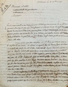 Pierre-André abbé POURRET (Narbonne 1754-1818), botaniste, il fut en relation avec Linné et Picot de Lapeyrouse. Lettre autographe signée à un botaniste. 4 pp. in-4. Narbonne, 3 décembre 1782. Longue et dense lettre entièrement consacrée à la botanique. Il le remercie de son envoi donne des nouvelles des grands naturalistes avec qui il est en contact. " M. Linné est reparti sans me donner signe de vie. Je n'entends plus parler de M. le chevalier de Lamarck. Depuis deux ans, j'éprouve que M. Thouin n'écrit plus qu'en hyver et au commencement du printemps [] ; mais pour le chevalier de Lamarck, je suis en vérité affligé de son silence. Je vous prie de luy faire mention de moi lorsque vous aurez l'occasion de le voir. Vous sçavez que j'ai bien des raisons pour luy être sincèrement attaché, ne fut-ce que pour m'avoir procuré l'honneur de votre connaissance []. J'attends incessamment de Strasbourg le supplément de Linné qui doit m'arriver avec d'autres livres. Ainsi puisqu'à votre avis je puis me passer du Systema plantarum, je n'aurai recours à vous Monsieur que pour les genera [] ". Il évoque son maître en botanique, Séguier, et ses travaux essentiellement orientés sur les plantes grasses ; et recueille des plantes pour lui en faisant des courses botaniques en compagnie d'un jardinier. " Mais ne vous attendez pas à recevoir aucune des plantes péruviennes que vous désirez. Je ne les possède plus moi-même à moins peut être en graines. C'est ce que je verrai dans mon grainier et vous le verrez vous même sur mon catalogue que j'achèverai bientôt []. J'ai été bien content du Synopsis et du Mantissa de M. de Asso mais entre nous, je n'ai pas été satisfait de ses plantes ni par rapport au nombre, ni par rapport au choix, ni par rapport à la beauté des échantillons. Je n'ai trouvé que trois petits fragments qui puissent trouver place dans mon herbier [] ". Il dresse une liste des plantes qu'il recherche, et propose des échanges. " M. Dorcy et M. de Bon qui ont vu mon herbier auraient pu vous le dire que quoique très volumineux, il n'est pas aussi riche que je le voudrais en arbres étrangers. D'ailleurs, comme j'y ai mis beaucoup de luxe et que les arbres séchés dans les pays étrangers le sont rarement avec beaucoup de précaution, je tiens beaucoup à ceux que l'on peut sécher dans les jardins, attendu d'ailleurs que la culture ne change pas aussi sensiblement les arbres que les plantes herbacées [] ".