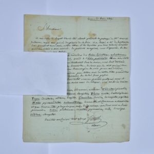 Claude SIONEST (ou SIONNEST) (1749-1820), malacologiste lyonnais ; il créa sa propre classification des mollusques et sa collection comptait une soixantaine d'espèces non répertoriées par Draparnaud. Lettre autographe signée à M. Dubouchet. 1 p. in-4. Lyon, 27 juin 1807. Echanges de coquilles. Il regrette d'avoir été absent lors de la visite de Marcel de Serres qui lui a laissé les coquilles mis de côté à son attention par Dubouchet. Malheureusement il possédait déjà toutes ces espèces. Il dresse de son côté la liste des coquilles sélectionnées pour lui, puis une seconde liste des individus qu'il recherche. " J'ai mis de côté plusieurs individus des helix Sylvatica, arbustorum, obvaluta, et planorb. Corneux ; quand à l'helix personata, il ne m'en reste point, et les premiers qui me tomberont sous la main vous sont destinés [] ". Au dos figure une longue liste de spécimen.
