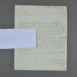Kaspar Maria von STERNBERG (1761-1838), naturaliste autrichien, l'un des fondateurs de la paléobotanique. Lettre autographe signée [à André Thouin]. 1 p. in-4. Vienne, 18 janvier 1812. " J'ai l'honneur de vous joindre ici le catalogue du Jardin des plantes de mon voisin le baron de Hochberg, qui est le plus riche et le mieux fourni en plantes dans notre contrée. Je désire que vous y trouviez quelque chose qui puisse mériter votre attention, je serais empressé de vous faire parvenir les graines que vous pourriez désirer. Je m'occupe également d'un nouveau établissement en Bohême, mais il n'est pas encore assez avancé pour mériter un catalogue [] ". [Le comte von Sternberg fut le fondateur du Musée nationale de Prague].