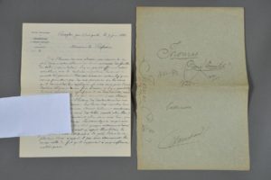 Ernest THOMAS, agronome, directeur de la station agronomique du Lézardeau et du laboratoire départemental du Finistère. Lettre autographe signée à " monsieur le Professeur " [Blanchard du Muséum ?]. 2 pp. in-4, en-tête de la station agronomique du Lézardeau. Rosglas par Quimperlé, 9 juin 1883. Sur ses recherches sur des insectes parasites du céleri. Il a réussi à isoler les larves de deux parasites du céleri, les transmet à son correspondant et décrit la manière dont le céleri a été attaqué.