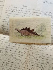Gaston LELARGE (1861-1934), architecte et ingénieur ; naturaliste amateur, il avait formé, en Colombie, une très importante collection de plus de 300.000 échantillons. Lettre autographe signée, accompagnée d'un dessin (encre et aquarelle), à Stanislas Meunier. 4 pp. in-4. Bogota (Colombie), 4 décembre 1920. Enveloppe jointe. Lettre consacrée à un énigmatique animal, mélange d'iguanodon et de stégosaure, qui aurait survécu à l'extinction des dinosaures et existerait encore sur les rives du fleuve Magdalena. Ayant recueilli des témoignages, il en fait une description, accompagnée d'un dessin, et prépare une expédition pour le débusquer.