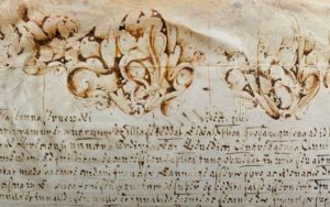 AISNE & OISE. Grand parchemin avec initiales décorées. 50 x 64 cm. Rome, Sainte-Marie Majeure, …