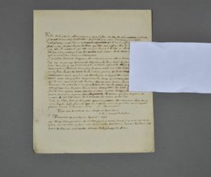 AISNE. Henri-Joseph-Claude de BOURDEILLES (1720-1802), évêque de Soissons (de 1764 à 1790). L.A.S. à Mgr Champion de Cicé (1735-1810), archevêque de Bordeaux. 1 p. in-4. [Belgique] Emmasick ? 23 sept. 1794. Adresse au dos avec cachet de cire. Lettre d'exil sur ses démarches pour soutenir et placer les prêtes exilés, qui arrivent tous les jours. Il évoque le cas de religieuses placées chez les Béguines, mais " elles en ont été si mécontentes qu'elles ont pris le parti d'aller à Munster, dont on a fort aise parce qu'il en est arrivé trois autres de la même congrégation, qui ne veut plus recevoir d'étrangères. Si tout ceci continue longtemps, Monseigneur, nous allons devenir bien malheureux, c'est icy un passage continuel de prêtres. Les bons curés en ont placé plus de trois cents et ils ne trouvent plus aucunes ressources. Il paroit que l'on commence à s'ennuyer beaucoup de nous avoir [] ".
