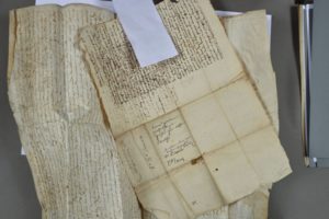 ARDÈCHE. 2 documents du XVIe concernant Annonay. - Grand parchemin, 56 x 44 cm. 13 mai 1555. Vente de deux terres " assises au terroir du Flachey " [à Pailharès] par Claude Gachet, chapelier à Annonay. - Donation faite au notaire royal d'Annonay maître Guillaume Sozca par Catherine Sarrailliers d'Annonay, de tous ses biens " par amour qu'elle a envers luy ". Annonay, 1543.