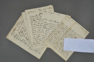 CANTAL. Barthélemy Louis Isaac Dufour, seigneur et baron de PRADT (1718-1780), personnalité de la noblesse de Haute-Auvergne, père de l'archevêque de Malines. 7 lettres autographes signées à madame Juge, négociante à Clermont. " Pradt près Allanche ", 1762-1779. 10 pp. in-4. Adresses au dos. Ayant entendu parler de son magasin " comme le meilleur de Clermont et surtout pour la partie soyerie ", il passe commande de divers habits : " Une robbe tafetas : 15 aulsnes seulement : taffetas fort blanc, agréable, et cet air de fraicheur qui annonce le gout et convient à tous les âges []. Je veux un taffetas agréable pour robbe et qu'on n'aye point de honte de le porter []. Autrefois il se fournissait chez Mr Roum. Mais " il m'a passé par un ennuy d'une rodingotte dont le drap a au moins cent trous, et je ne dis pas trop [] ". " Je me trouve sans bouton de veste pour compléter la garniture pinchebeck pour mon valet de chambre, point de doublure pour la susditte veste []. Il faut que le tout soit assorty []. Je ne luy parle point d'une garniture complette de bouton de fil trait argent à colimaçon [] ".