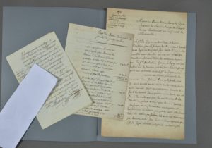 DORDOGNE. Henri de GOYON DE LA POMBANYE (Razac-d'Eymet, Dordogne vers 1726-1788), économiste, il mit au point une machine à scier le bois, fonda une scierie qui fit faillite ; il collabora au Journal d'agriculture et fut embastillé en 1762 pour un pamphlet contre les Jésuites. Dossier sur la faillite de la Société du sciage du bois (1782). Goyon, ayant inventé une nouvelle machine à scier le bois, fonda, en 1780, avec deux associés, une société de sciage. La mise au point et la construction de la machine ayant englouti une grande partie des fonds, les associés se retirèrent, laissant Goyon en état de faillite. 3 documents composent ce dossier : " Mémoire pour messire Henry de Goyon seigneur de La Plombanye en Périgord ancien lieutenant au régiment de Normandie " (4 pp. in-folio) détaillant la situation de la société, " État des dettes dues par la société du sciage du bois " (3 pp. in-4). Promesse de cession faite par l'un des associés.