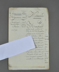 EURE-ET-LOIR. 2 manuscrits, 4 et 2 pp. in-folio. 1780-1788. Deux mémoires sur les réparations à faire au château de la Salle (comté de Senonches), et l'établissement des états de la forêt du comté de Senonches.
