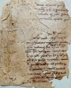 ISÈRE. Feuillet manuscrit du XIIIe siècle de papier cotonneux, écrit recto-verso. 14 x 12 cm. …