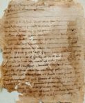 ISÈRE. Feuillet manuscrit du XIIIe siècle de papier cotonneux, écrit recto-verso. 14 x 12 cm. Daté de 1274 (à deux reprises). Mouillures. Très rare document sur papier du XIIIe siècle, contenu dans une chemise du début du XIXe, portant cette mention : " Papier de 1274 détaché d'un protocole de cette date de Chabert de Goncelin, près Grenoble, appartenant à Mr Moulinet et coté à son inventaire n°1239 bis ". Et plus haut : " Papier de coton donné le 11 may 1826 par M. Moulinet lui-même ".