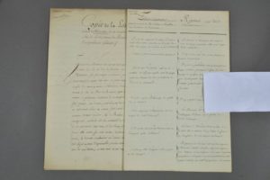 LANDES. 2 manuscrits, 6 pp. ½ in-folio, [1770]. Baronnie de Marensin. " Éclaircissemens demandés par le Conseil de M. le Duc de Bouillon sur la terre de Marensin " avec les réponses en regard du comte de Marcellus, dernier baron de Marensin ; accompagné de la copie de la lettre d'envoi de M. le comte de Marcellus du 28 décembre 1770. 16 questions relatives à la terre de Marensin : " les églises des paroisses ont-elles besoin de quelques réparations, combien en couterait-il pour les faire réparer ? ", " On demande une idée du commerce de ce païs, s'il y a quelque rivière navigable, ou capable de supporter le flottage ", etc.