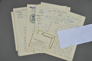 LOIRE-ATLANTIQUE. Georges DURIVAULT (1887-1972), botaniste, directeur du Jardin des Plantes de Nantes, membre de la Société botanique de France. 17 lettres autographes signées (+ 2 incomplètes) à Mad. de Bourbon. Nantes, Jardin des Plantes, septembre 1939 - avril 1943. 74 pp. in-8, en-têtes du Jardin des Plantes de Nantes, et du Laboratoire d'entomologie appliquée et de parasitologue agricole du Muséum d'histoire naturelle. Intéressante correspondance couvrant toute la première partie de la guerre. " La marche des événements semble grave depuis l'entrée en guerre des chacals d'Italie en quête de colonies et des anciens territoires italiens devenus français. Ici, c'est toujours le triste défilé qui continue, après les Belges, Hollandais, Français du Nord et de l'Est, voici ceux de Seine Inférieure et ceux de l'Île de France []. Les événements tragiques ont été plus vite que le courrier. Le 19 juin à midi les Allemands entraient à Nantes l'arme à la bretelle. On leur demanda pourquoi Nantes eut ce sort privilégié de n'avoir aucune attaque. 1° c'était ville ouverte 2° ils disaient qu'il y avait tant d'espions et tant d'amis qu'ils se seraient bien gardés de tirer dessus (de 30 à 60.0000 des deux sexes) ; de plus notre malheureux pays (la France) était moralement pourri, les cadres de l'armée effroyablement minés par le travail de (?) des communistes [] ". Il est joint son ex-libris et une carte de visite autographe.