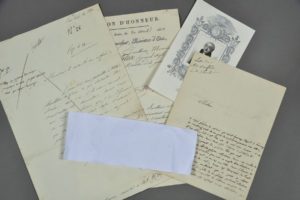 LOT-ET-GARONNE. Bernard-Germain comte de LACÉPÈDE (Agen 1756-1825), naturaliste et homme politique, grand chancelier de la légion d'honneur. Lettre autographe signée [au physicien et chimiste Jacques Charles (1746-1823)]. 2 pp. in-4. Agen, 18 janvier 1789. Lettre d'introduction de son confrère de l'Académie d'Agen, Pierre Vigué. " M. Vigué physicien de mes amis, qui réunit beaucoup d'esprit à beaucoup de connoissances, vient de me prier de vous faire parvenir une lettre et une notice, dont il est bien aise de vous faire hommage [Vigué qui avait publié un Mémoire sur la chaleur, publia en ce mois de janvier 1789 sa Théorie chimique sur les engrais]. Il n'a pas cru, monsieur, devoir donner plus d'étendue à ses idées, en les soumettant au jugement d'un physicien tel que vous. Je ne me félicite pas peu, monsieur, d'avoir une occasion de vous parler de mon admiration pour vous. Je compte être sédentaire à Paris avant peu de mois, je me fais une fête d'avoir l'honneur de vous y embrasser []. Mon état de souffrance me prive de l'avantage de vous parler plus longtemps de mon enthousiasme [] ". [Pierre Vigué (Agen ou Villeneuve-sur-Lot 1753-1832) fut membre fondateur de la Société académique d'Agen]. On joint 2 lettres signées comme grand chancelier de la légion d'honneur (1810-1813) et un portrait gravé.