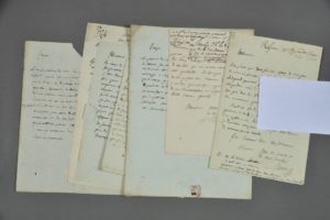 MARNE. Jean-Claude NAVIER (1750-1828), médecin, fondateur (1809) et premier directeur de l'École de Médecine de Reims, découvreur de l'Éther nitreux ; il contribua à l'essor du commerce du vin de Champagne. 9 lettres autographes signées au librairie Merlin, à Paris. Reims, 1794-1797 et s.d. 13 pp. in-4 et in-8. Adresses au dos. Quelques déchirures à l'ouverture des lettres. Correspondance relative à la constitution de sa bibliothèque : commandes d'ouvrages et de livraisons (en particulier de la Bible et d'ouvrages scientifiques sur les champignons, la botanique, etc.).