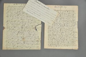 NIÈVRE. Pierre BABAUD DE LA CHAUSSADE (1702-1792), maître de forges ; il racheta et développa considérablement les forges de Guérigny, grâce à l'appui de Maurepas, qui lui offrit des marchés pour la marine. 2 lettres autographes signées, l'une à sa soeur à Bellac, l'autre au représentant de celle-ci après son décès (également à Bellac). 4 pp. in-4. Paris, 1733-1749. Adresses au dos. Rares lettres de ce personnage fondateur de l'industrie métallurgique nivernaise. La première lettre relate les conséquences sur ses affaires de la banqueroute du " premier de nos banquiers de Paris ". " Cette circonstance est bien fâcheuse pour nous non seulement par l'argent que les fripons nous ferons perdre, mais encore parce qu'il nous faut faire face aux lettres de change tirées sur eux et qui échoient tous les jours, j'en ai déjà payé pour 20000# et nous sommes bien heureux que nos affaires soient aussy bonnes pour soutenir des pertes et des frais si considérables []. Je pars en ce moment pour Versailles, j'y verray M. de Maurepas pour le porter à nous accorder ses protections pour faire déclarer notre créance privilégiée [] ". Il évoque également les bruits qui courent sur une guerre prochaine Sa seconde lettre traite des affaires de fermage à Bellac, sa région natale, où il a également des affaires. " Quoyque je fusse préparé Monsieur à la perte de mes bestiaux, je n'y suis pas moins sensible, elle renouvelle celle que j'ay faite en 1747 à Guérigny et à Frémery, et me fait faire des réflections affligeantes sur les moyens de la réparer. Ces sortes de malheurs ont eu des suittes funestes en Nivernois contre les fermiers, quoy qu'un événement de force majeure, ils ont supporté la perte de moitié []. Mr Galicher [son beau-frère] n'a fait à Guérigny aucune dépense il y est à mes frais []. Je luy donneray un crédit sur ma caisse de Guérigny jusqu'à concurrence de 300# []. Vous n'avez pas besoin monsieur de mon avis pour faire un exemple et punir les voleurs de mes bois [] ". Il évoque également l'accouchement de son épouse et ses cinq enfants. Nièvre : voir également n°527