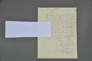 NORD. Félix AUVRAY (Cambrai 1800-1833), peintre, élève du baron Gros. Lettre autographe signée à " messieurs les professeurs de l'académie de Valenciennes ". 1 p. in-4. Paris, 9 juillet 1821. Adresse au dos. " L'administration ayant exigé que chaque année je lui fasse un tableau pour juger de la manière dont j'emploie mon tems, c'est pour satisfaire à son désir que je vais commencer le sujet dont l'esquisse est jointe à la présente [absente]. Antigonus, un des successeurs d'Alexandre, ayant rêvé que Mithridate fils d'Ariobarzane et compagnon de Dimitrius son fils, emportait vers le royaume de pont une moisson d'or qu'il avait semé, résolut de le faire mourir [] ; écrivit sur la terre avec la pointe de son javelot : fuis Mithridate ! et son ami profite de ce conseil. C'est le moment du sujet. J'espère que vous voudrez bien me faire passer vos observations sur l'ensemble de la composition [] ".