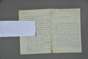 HAUTES-PYRÉNÉES. Jean DEVÈZE, architecte à Tarbes. Lettre autographe signée à " mon cher Prunnet ", 4 pp. in-4. Tarbes, 25 vendémiaire an 8. Lettre sur sa situation personnelle difficile, la perte de ses deux garçons " il ne me reste que trois filles, de l'âge de 13, 7 et 2 ans ", du rétablissement de la santé de sa femme aux eaux de Bagnères. " Quant à moi, mon cher ami, je rame toujours la galère, soit pour les travaux des ponts et chaussées en qualité de conducteur principal aux appointements de 1000 f. ou à quelques commissions extraordinaires que le département me confie assez souvent, que mon zèle ne sait refuser malgré le défaut de payement des deux côtés ". Il lui promet d'envoyer sous huit jours le plan de sa maison avec projet d'amélioration