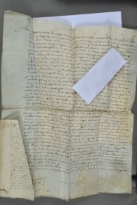 SARTHE. Grand parchemin, 60 x 50 cm (+ pièce manuscrite enliassée du 13 août 1556). Au siège …