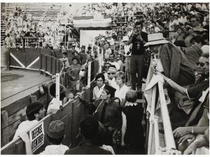 1970. 3 FOTOGRAFIAS DE PABLO PICASSO EN LOS TOROS. 20x29 cm. En el dorso sello de Apis Paris.