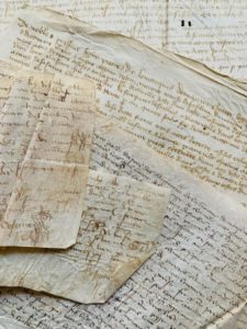 SEINE-MARITIME. Liasse de 9 parchemins des XVe et XVIe siècles, datés 1405, 1448, 1455, 1460, …