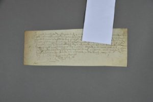 VENDÉE. Parchemin, 9 x 27 cm. Fontenay-le-Comte, 25 janvier 1595. Jacques Janvier " conseiller et …