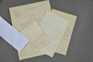 Antoine-Nicolas BAILLY (1810-1892), architecte parisien (tribunal de commerce de Paris, achèvement de l'hôtel de ville, etc.), il est aussi président fondateur de la Société des artistes français, qui organise chaque année le fameux Salon des artistes français. 3 lettres autographes signées, 1 L.S. et 2 cartes de visite aut. au peintre William Bouguereau (1825-1905). 5 pp. formats divers, l'une à en-tête de l'Association des artistes français pour les expositions annuelles des beaux-arts. Les autres à son chiffre gaufré. 1878-1885. Il lui adresse des places à l'Opéra, lui recommande le tableau " Agar dans le désert " " présenté à l'appréciation du jury par Mlle Drojat " [Elisa Drojat (Lyon 1828-1910)], lui annonce qu'il a été élu membre du jury de peinture pour le salon de 1883, lui expose les raisons pour lesquelles une séance du comité a été repoussée, lui adresse son " brevet de commandeur ".
