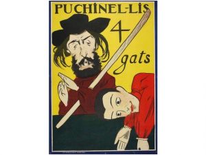 1900 ca. (MODERNISMO-PUBLICIDAD). CASAS, RAMON: PUCHINEL.LIS 4 GATS. Barcelona: Lit. Utrillo & Rialp, sa. Litografia. 53,5x39 cm. B. Pequenas perforaciones en el margen superior.
