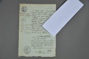 Claude-Étienne BEAUMONT (Besançon 1757-1811), architecte. Pièce autographe signée. 1 p. in-4. Paris, 20 frimaire an 11. Certificat en faveur de Jean-Nicolas Huyot, élève en architecture, " qui a concouru aux grands prix proposés par l'Institut, d'une manière honorable et qu'il a montré en diverses circonstances les dispositions les plus heureuses pour cet art dans lequel il sera un jour utile à sa patrie [] ". [En effet, Jean-Nicolas HUYOT (1780-1840), participera à la construction de l'Arc-de-Triomphe].