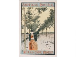 1898. (ESPECTACULOS). RUSINOL, SANTIAGO: L'ALEGRIA QUE PASSA. MUSICA D'ENRIC MORERA. Barcelona: Tirat a an Utrillo & Rialp. Litografa. 90x68 cm. (35,5x26,8 in.). A -. Sutiles manchas del tiempo en los margenes.