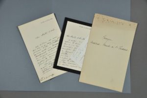 Edouard CORROYER (1835-1904), architecte, inspecteur général des édifices diocésains ; il supervisa la restauration du Mont-Saint-Michel et emmena sa femme de chambre, Anne Boutiaut, qui devint la célèbre " Mère Poulard ". 2 lettres autographes signées et 1 carte de visite aut. au peintre William Bouguereau. 3 pp. in-8 et in-12. Paris, 1892-1897. " Votre tableau est arrivé hier soir et je veux vous faire parvenir l'écho de l'enthousiasme qu'il a excité ; ces Dames sont absolument enchantées [] ". Il se dit très heureux de travailler avec lui à l'association des artistes peintres. " Ce matin, nous avons continué les travaux commencés hier et j'ai recueilli des hommages qui se sont manifestés spontanément en présence de votre Christ. J'aurais voulu que vous les entendissiez []. C'est très beau comme morceau de peinture savante et c'est encore plus beau comme idée philosophique présentée avec une admirable simplicité [] ". [Cette grande oeuvre, Compassion, est aujourd'hui conservée au musée d'Orsay].