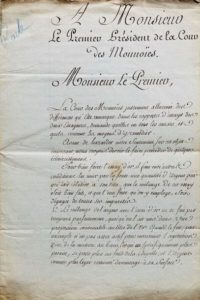 Léonard RACLE (Dijon 1736-1791), ingénieur, architecte et faïencier, architecte du château de Voltaire à Ferney, et du canal de Pont-de-Vaux. Manuscrit signé " A Monsieur le président de la Cour des Monnoies ". 10 pp. in-folio. Daté du 21 août 1787. Importante étude sur la résolution d'un problème soulevé par l'Académie de Dijon, sur des différences observées dans des monnaies d'or et d'argent. " La Cour des Monnoies justement allarmée des différences qu'elle remarque dans les rapports d'essays des deux essayeurs, demande quelles en sont les causes, et quels seroient les moyens d'y remédier ]. Pour bien faire l'essay d'or, il faut entr'autres conditions lui unir par la fonte une quantité d'argent pur qui soit relative à son titre, que le mélange de cet essay soit bien fait, et que l'eau forte qu'on y employe soit dégagée de toutes ses impuretés [] ". Après des remarques préliminaires, il développe son exposé en plusieurs paragraphes : les causes entre les essais d'or, objections que l'on peut faire, cause des différences entre les essais d'argent, moyens de remédier à ces différences. Il propose en conclusion de faire les essais dans une " essayerie " et de fournir " tous les agents et substances nécessaires aux essais ".