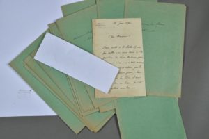 EX-LIBRIS. 30 lettres adressées à Paul de Fleury, 1896. Lettres de collectionneurs d'ex-libris de France et d'Europe, sur l'échange, la fabrication, l'exposition d'ex-libris : L. Bouland, sir James Roberts Brown, sir Jeston White, Philippe Delamain à Jarnac (6 longues), Verser à Amsterdam, duc de Caraman, etc.