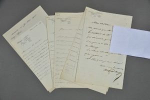 Alfred ARAGO (1816-1892), peintre. 10 lettres autographes signée à un ami. 13 pp. in-8. Paris et Madrid, 1868-1871 et s.d. Au sujet d'un portrait du duc de Morny, de la situation difficile du peintre Protais, le placement d'un tableau au Luxembourg " du pauvre Le Poittevin qui est mourant ". Il évoque encore son admiration pour Vélasquez, un portrait de son père, le déplacement de certains tableaux mal exposés, le placement d'un tableau d'Appert, etc.