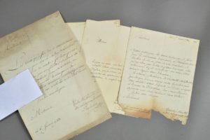 Jean-Jacques BACHELIER (1724-1806), peintre, décorateur des bâtiments du Roi (1755). 2 lettres autographes signées à " Messieurs ". 1 p. in-folio et 1 p. in-4 (bas de la seconde lettre déchirée avec atteinte de la signature ; une lettre un peu poussiéreuse). Paris, 1784-1785. Voeux pour le succès de son académie des arts [en 1753, Jean-Jacques Bachelier avait ouvert une académie privée, puis une école gratuite de dessin qui deviendra royale en 1767 pour devenir École des arts décoratifs]. " Les voeux que je fais pour ce renouvellement d'année, ont pour objet l'avantage de l'académie et le bonheur des membres qui la composent. Puissai-je un jour me féliciter du succès de mes sollicitations pour sa dottation, et donner à ses membres la récompense du désintéressement vraiment patriotique avec lequel ils ont contribué à son établissement ". Il adresse l'année suivante une seconde lettre de voeux, souhaitant " l'extension des bienfaits du Roi en faveur de notre académie [] ". On joint du peintre J. VIEL, agrégé de l'Académie (en 1762), 2 L.A.S. à " Messieurs ". 2 pp. in-4. Lyon 1762-1763. " Agréez, je vous prie, les voeux les plus ardents et les plus sincères d'un affilié de l'académie qui ne cherche qu'à se rendre moins indigne de vos bontés [] ".