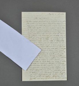 Ernest BRETON (1812-1875), peintre et archéologue ; il visita Pompéi en 1853-1854 et publia le fruit de ses découvertes en 1855 dans Pompéia. Lettre autographe signée au peintre Jean-Jacques Champin (1796-1860), qui fut son professeur. 4 pp. in-8. Naples, 13 novembre 1853. Lettre à son maître durant son voyage à Pompéi. Il raconte son voyage, évoque ses souvenirs de la grande chartreuse, sa visite de Turin et de ses musées dont le musée égyptien, la Riviera et ses villas somptueuses, puis Pise, Florence, Sienne, Rome. " Nous voici maintenant installés à Naples où nous allons passer deux mois. Nous sommes logés sur la place du château neuf d'où nous voyons fumer le Vésuve. Nous avons déjà fait plusieurs excursions. Pompéi a déjà eu plusieurs de nos visites. Il y a fort à rectifier, corriger et ajouter au manuscrit de mon ouvrage ébauché à Paris d'après mes anciennes notes ; mais maintenant me voici à même de tout voir, tout mesurer, tout vérifier, et je ferai en sorte que mon premier souscripteur ne soit pas trop mécontent de moi [] ".