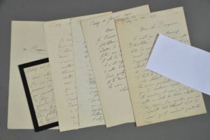 Alfred de CURZON (1820-1895), peintre. 6 lettres autographes signées à William Bouguereau. 17 pp. in-8. Passy, 1876-1885. Belle correspondance artistique, en particulier sur les récompenses du Salon, comme dans cette lettre du 25 mai 1886 : " Mon cher Bouguereau, ce n'est pas sans beaucoup d'hésitation que je t'envoie cette liste de noms : ce travail que tu m'as demandé dans ton désir si louable d'approcher le plus possible de la justice absolue, m'a paru extrêmement difficile, et je n'ai pu disposer, pour le faire, de tout le temps désirable. En étudiant les récompenses données les années précédentes, il m'a semblé que de nombreuses injustices avaient été commises ; et comme je ne peux pas mettre en doute les bonnes intentions des juges, j'en conclus que ces jugements sont tellement sujets à erreur, qu'il vaudrait peut-être mieux renoncer à en faire. On laisserait le beau public rendre ses arrêts à tout et à travers ; ils seraient plus mauvais sans doute ; mais les artistes n'y seraient pour rien et conserveraient la paix entre eux, ce qui est bien quelque chose. Je t'ai déjà dit que le règlement de cette année rendait, à mon avis, votre tâche encore plus difficile : il concerne les conditions établies pour le hors concours, et supprime les rappels de médailles en établissant qu'il ne pourra être donné qu'une médaille supérieure à celles déjà obtenues. Il en résulte que la 2e médaille devient une impasse pour presque tous les artistes qui n'ont pas obtenu précédemment une 3e méd. Il n'est pas facile d'obtenir une 1ère med. et pour certains genres c'est presque impossible : c'est ainsi que ton collègue Mr Cabat n'en a jamais eue, pas plus que Jules Dupré et bien d'autres. On ne sera donc conduit à ne donner qu'une 3e méd. à ceux qui en méritent une 2e, et cela dans leur intérêt, et à attribuer au contraire une 2e à l'artiste moins méritant qui aura obtenu déjà une 3e. Je te prie de me donner l'adresse de Fortunata d'Agostino ; je suis trop loin pour qu'elle vienne sans être appelée et d'ailleurs je l'ai vue chez toi et cela me suffit pour savoir qu'elle me sera utile []. Si tu connais quelque femme modèle ayant les cheveux très frisés, bruns ou noirs, presque crêpés, je te serai bien obligé de m'en donner l'adresse : jusqu'ici je cherche en vain ".