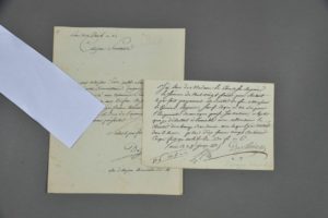 Louis-Pierre DESEINE (1749-1822), sculpteur, prix de Rome, au service du prince de Condé ; il sculpta une partie du bas-relief de l'arc de triomphe du Carrousel. - Pièce autographe signée. 1 p. in-8. Paris, 28 juin 1815. Reçu de la comtesse Reynier pour le " buste de feu monsieur le général Reynier, sauf ce qui m'est dû pour l'empreinte du masque prise sur nature, objet que je débattrai à l'amiable avec Monsieur le comte de Champ-Baudouin [] ". [Le général Reynier est inhumé au Panthéon]. - Lettre autographe signée à un sénateur. 1 p. in-4. Floréal an 11. " Daignez, citoyen sénateur, accueillir avec bonté mes opinions sur la nécessité indispensable de rendre aux édifices consacrés à la religion catholique cette magnificence extérieure qui commande le respect, tel est le but de l'ouvrage que j'ai l'honneur de vous présenter ".