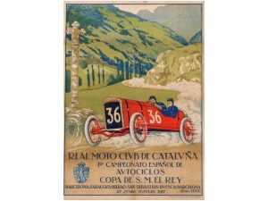 1917. (AUTOMOVILISMO). RIBOT: REAL MOTO CLUB DE CATALUNA. I er. CAMPEONATO ESPANOL DE AUTOCICLOS COPA DE S. M. EL REY. Barna: Talleres Graficos Riusset. Litografía. 68x50 cm. (27x19,7 in.). B. Marcas de doblez y pequenas restauraciones en los...